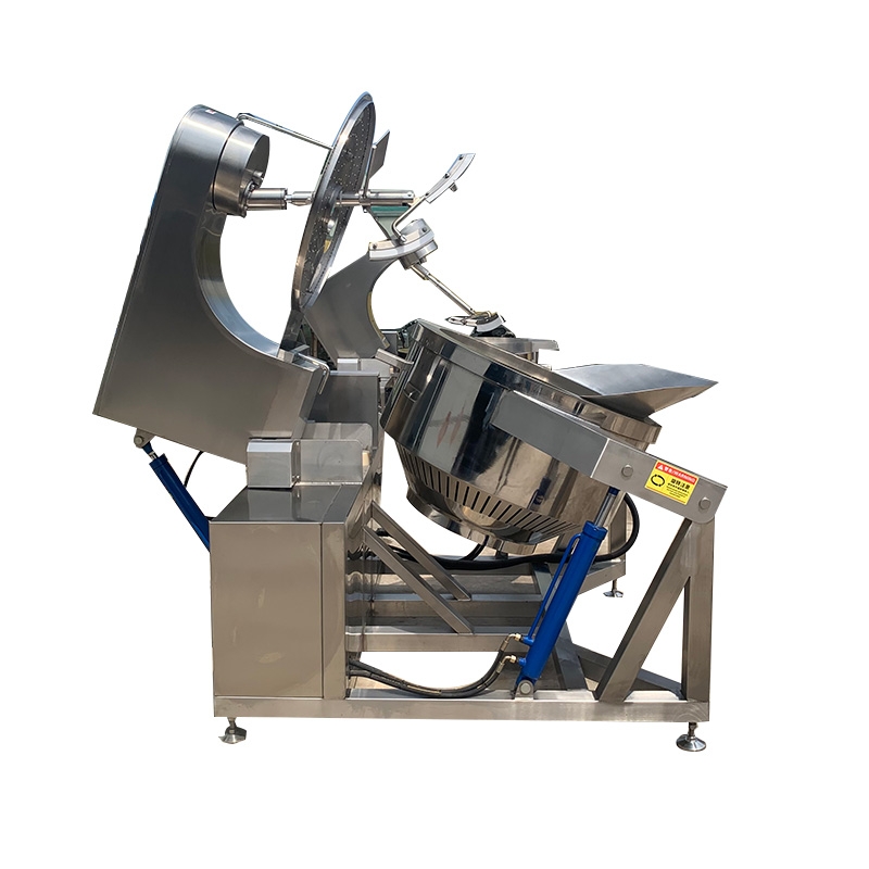蒸汽加热全自动行星搅拌炒锅 本设备采用一次冲压成型的不锈钢锅体,整体圆度误差小,搅拌尺与锅体紧密贴合,搅拌尺采用聚四氟乙烯材料,耐磨耐高温,达到食品级要求。行星刮底搅拌,搅拌速度变频可调,无死