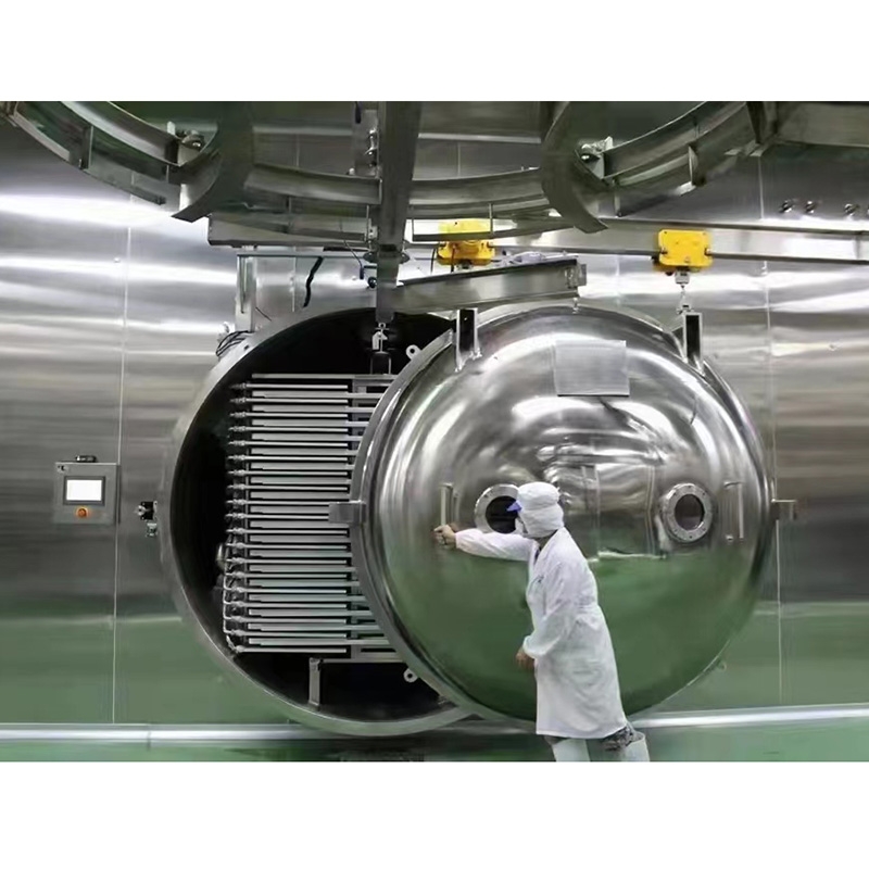 大型食品冻干机 真空干燥机是解决物料脱水的设备,通过抽去包装容器内部空气达到预定真空度后,去除水分。通过本设备加工之后,物品干燥后不仅色香味不变,且保持了原有的活性成分和营养成分,存放时间更长,现已