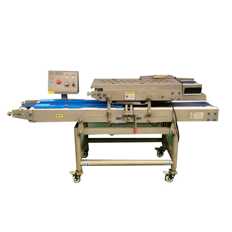 鲜肉切条机: 鲜肉切条机的输送带和刀架采用了一种创新的便拆架构设计,使得更换和维护变得轻而易举,而且,切条机特制的刀架结构确保了切割面的光洁度,大大减少了碎料的产生,其次,输送带和刀片速度采用变频调节,